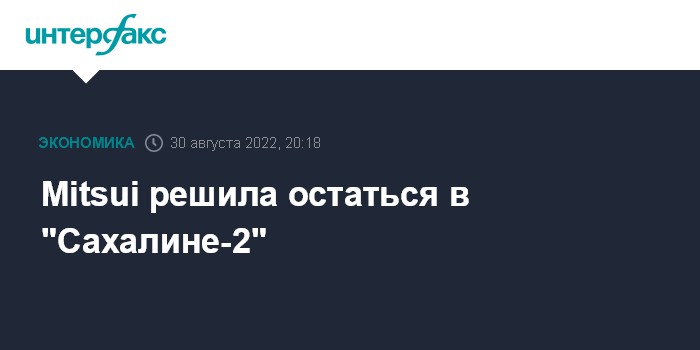 Москва. 30 августа. INTERFAX.RU - Правительство РФ одобрило участие японской компании Mitsui в новом, российском операторе проекта "Сахалин-2".