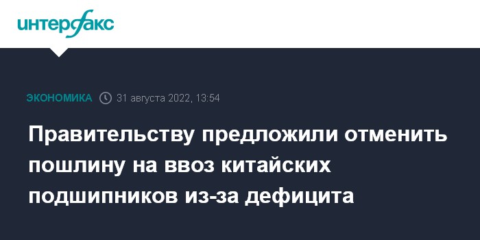Правительству предложили отменить пошлину на ввоз китайских подшипников из-за дефицита