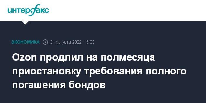 Ozon продлил на полмесяца приостановку требования полного погашения бондов