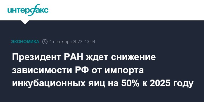 Президент РАН ждет снижение зависимости РФ от импорта инкубационных яиц на 50% к 2025 году