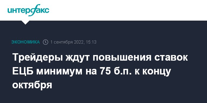 Трейдеры ждут повышения ставок ЕЦБ минимум на 75 б.п. к концу октября