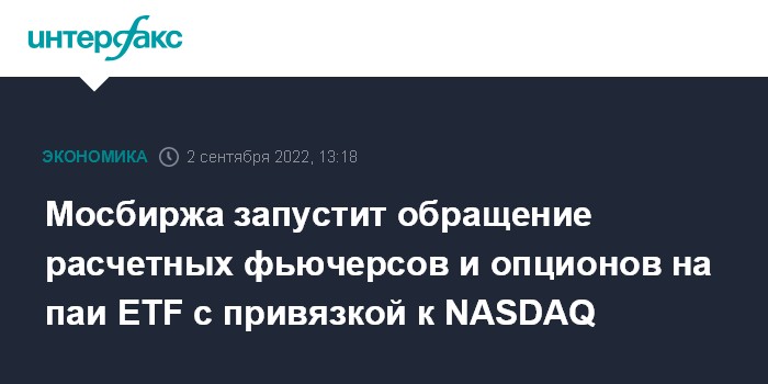 Мосбиржа запустит обращение расчетных фьючерсов и опционов на паи ETF с привязкой к NASDAQ