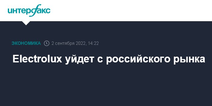 Москва. 2 сентября. INTERFAX.RU - Шведская Electrolux AB, один из крупнейших в мире производителей бытовой техники, приняла решение уйти с рынка РФ и продать российский бизнес местному менеджменту, говорится в ее пресс-релизе.