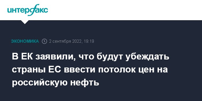 В ЕК заявили, что будут убеждать страны ЕС ввести потолок цен на российскую нефть