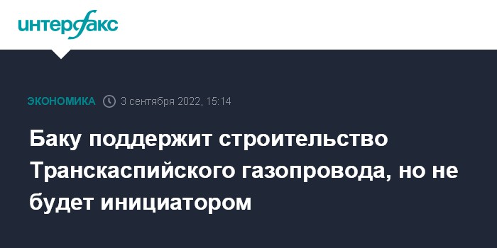 Москва. 3 сентября. INTERFAX.RU - Азербайджан поддержит реализацию Транскаспийского газопровода, если власти Туркменистана примут решение о его строительстве, но Баку не будет инициатором проекта, заявил президент Ильхам Алиев.