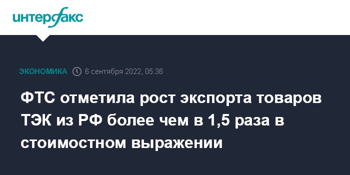 ФТС отметила рост экспорта товаров ТЭК из РФ более чем в 1,5 раза в стоимостном выражении