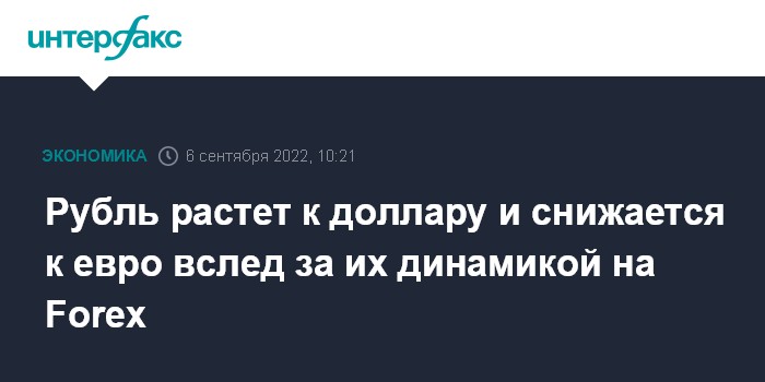 Москва. 6 сентября. INTERFAX.RU - Доллар США дешевеет, евро, напротив, растет на "Московской бирже" во вторник утром, рубль слабо меняется к бивалютной корзине в условиях разнонаправленной динамики в основных парах.