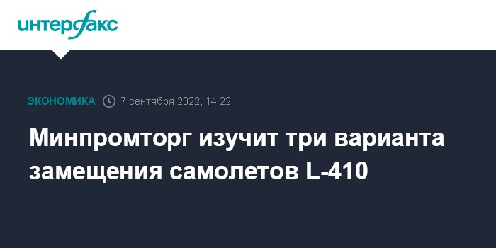 Москва. 7 сентября. INTERFAX.RU - Власти РФ рассматривают несколько вариантов замещения самолетов L-410 на фоне вынужденного выхода из авиастроительного предприятия Aircraft Industries (Чехия) российских собственников, сообщил замглавы Минпромторга РФ Олег Бочаров.