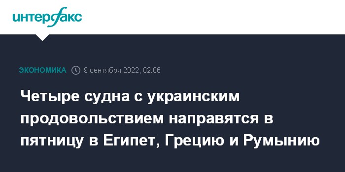 Четыре судна с украинским продовольствием направятся в пятницу в Египет, Грецию и Румынию