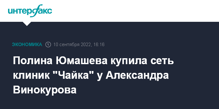 Полина Юмашева купила сеть клиник "Чайка" у Александра Винокурова