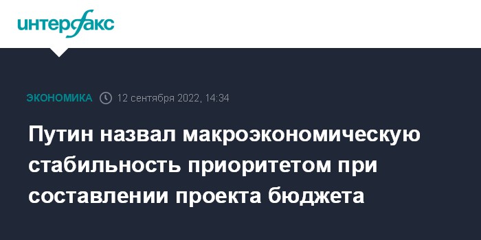 Москва. 12 сентября. INTERFAX.RU - Сохранение макроэкономической стабильности и реализация нацпроектов должны быть приоритетами при подготовке проекта федерального бюджета на 2023-2025 годы, сказал на совещании с правительством президент Владимир Путин.