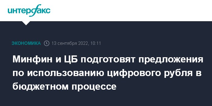 Москва. 13 сентября. INTERFAX.RU - Минфин и ЦБ РФ к концу года подготовят предложения по использованию цифрового рубля в бюджетном процессе. Соответствующее поручение дал премьер-министр Михаил Мишустин по итогам прошедшей недавно стратегической сессии, посвящённой развитию отечественной финансовой системы, сообщила пресс-служба правительства.
