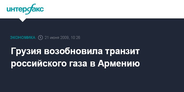 Тбилиси. 21 июня. INTERFAX.RU - Транзит природного газа из России в Армению через Грузию, который был приостановлен 16 июня в связи с реабилитационными работами на магистральном газопроводе "Север-Юг" возобновлен в воскресенье утром, сообщила "Интерфаксу" руководитель службы по связям с общественностью ООО "Грузинская нефтяная и газовая корпорация" Тамара Шошиашвили.