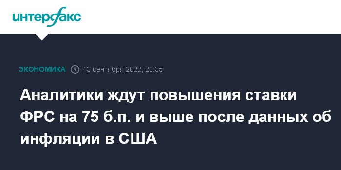Аналитики ждут повышения ставки ФРС на 75 б.п. и выше после данных об инфляции в США