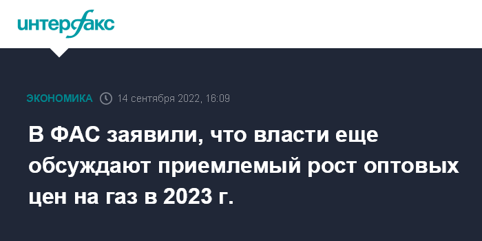 В ФАС заявили, что власти еще обсуждают приемлемый рост оптовых цен на газ в 2023 г.