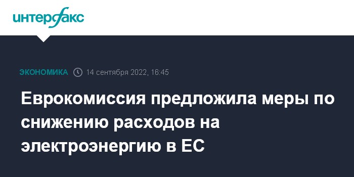 Москва. 14 сентября. INTERFAX.RU - Европейская комиссия (ЕК) сделала в среду официальное предложение по экстренному вмешательству на энергетических рынках Европы в связи резким ростом цен, в том числе по мерам в сфере потребления электроэнергии.