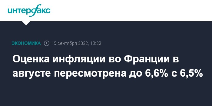 Оценка инфляции во Франции в августе пересмотрена до 6,6% с 6,5%