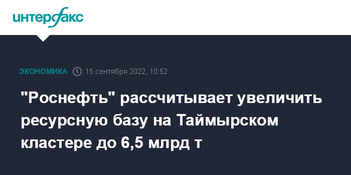 Москва. 15 сентября. INTERFAX.RU - "Роснефть" рассчитывает на Таймырском кластере, где реализуется масштабный проект "Восток Ойл", увеличить ресурсную базу до 6,5 млрд т., сообщила компания.