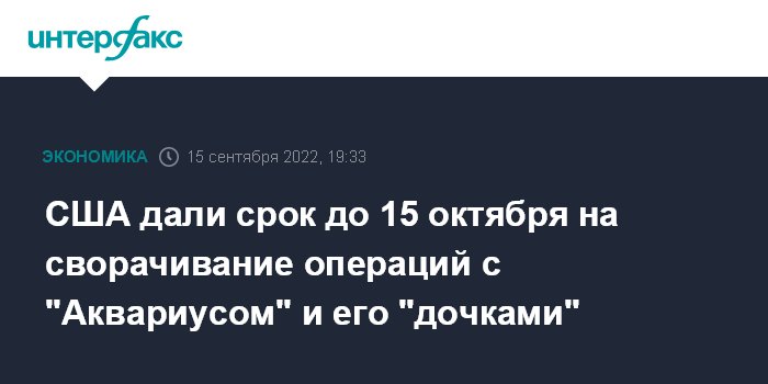 США дали срок до 15 октября на сворачивание операций с "Аквариусом" и его "дочками"