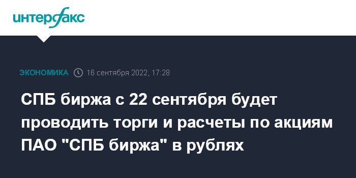 СПБ биржа с 22 сентября будет проводить торги и расчеты по акциям ПАО "СПБ биржа" в рублях