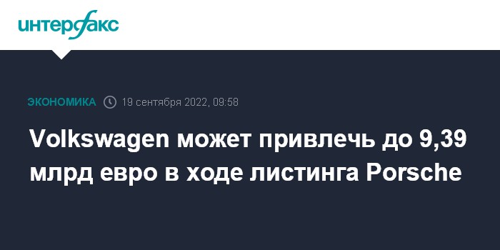 Как сообщил VW, он намеревается продать 113,875 млн привилегированных акций Porsche и привлечь 8,71-9,39 млрд евро. При этом оценка Porsche может составить от 70 до 75 млрд евро, а размещение стать крупнейшим в Европе в этом году.