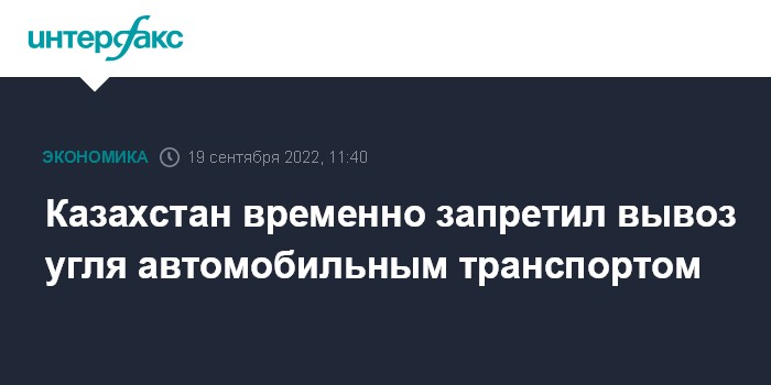 Москва. 19 сентября. INTERFAX.RU - В Казахстане введен временный запрет на вывоз угля автомобильным транспортом в интересах местных потребителей, сообщила пресс-служба Министерства индустрии и инфраструктурного развития республики.