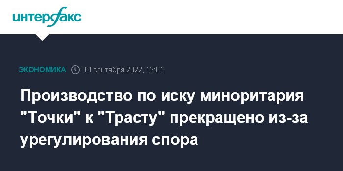 Производство по иску миноритария "Точки" к "Трасту" прекращено из-за урегулирования спора