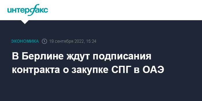 Москва. 19 сентября. INTERFAX.RU - Канцлер Германии Олаф Шольц в ходе предстоящего визита в ОАЭ, как ожидается, подпишет контракт на импорт в Германию сжиженного природного газа, заявил министр экономики страны Роберт Хабек. Его слова приводит Bloomberg.