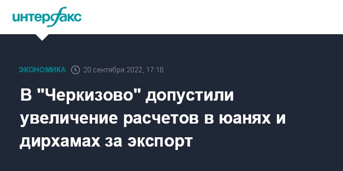 Москва. 20 сентября. INTERFAX.RU - Группа "Черкизово", один из ведущих производителей мясной продукции в России, не исключает увеличения расчетов в юанях и дирхамах в экспортной программе.