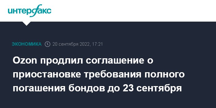 Ozon продлил соглашение о приостановке требования полного погашения бондов до 23 сентября