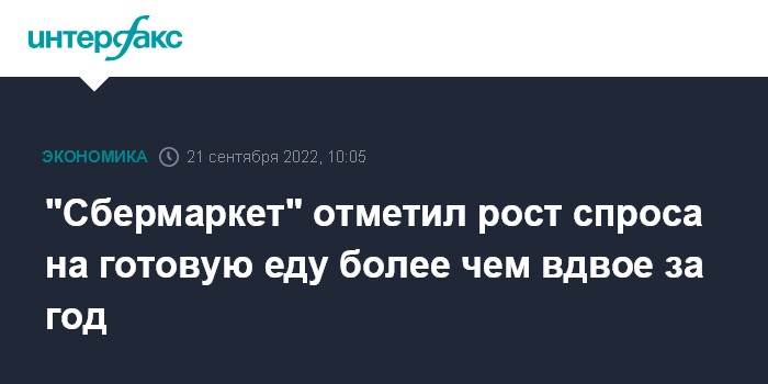 Москва. 21 сентября. INTERFAX.RU - Спрос на готовую еду из супермаркетов вырос на 118% за последний год (по данным на август 2022 года по сравнению с аналогичным показателем 2021 года), сообщил сервис доставки "Сбермаркет" - крупнейший игрок на российском рынке e-grocery.