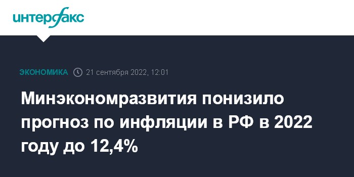 Минэкономразвития понизило прогноз по инфляции в РФ в 2022 году до 12,4%