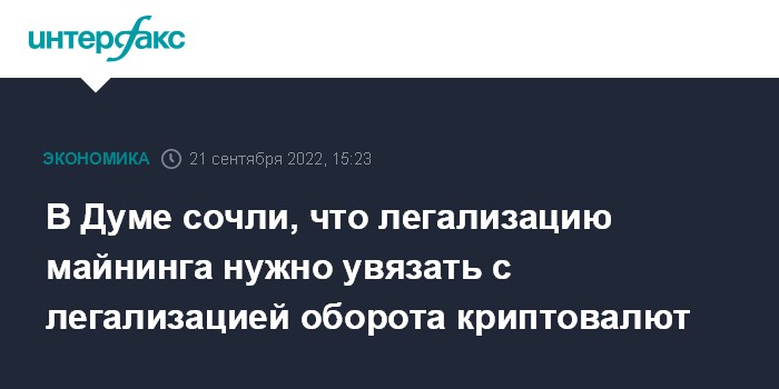 В Думе сочли, что легализацию майнинга нужно увязать с легализацией оборота криптовалют