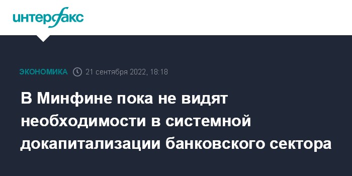 Москва. 21 сентября. INTERFAX.RU - Системная докапитализация российского банковского сектора сейчас пока не требуется, сообщил журналистам директор департамента финансовой политики Минфина Иван Чебесков.