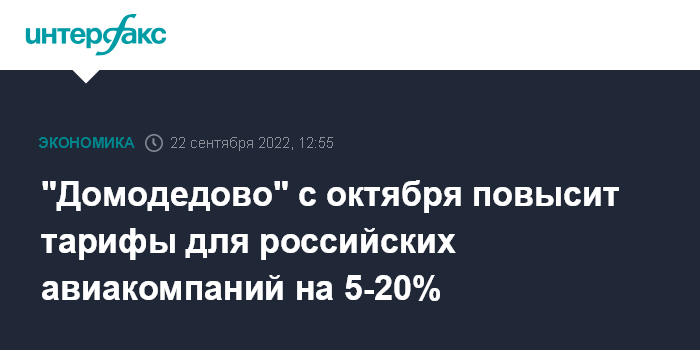 До этого в последний раз тарифы "Домодедово" для российских перевозчиков индексировалась в апреле, затем частично в июле и августе этого года.