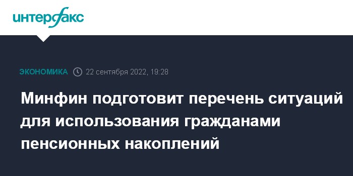Минфин подготовит перечень ситуаций для использования гражданами пенсионных накоплений