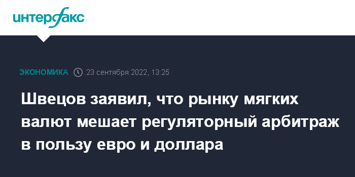 Швецов заявил, что рынку мягких валют мешает регуляторный арбитраж в пользу евро и доллара