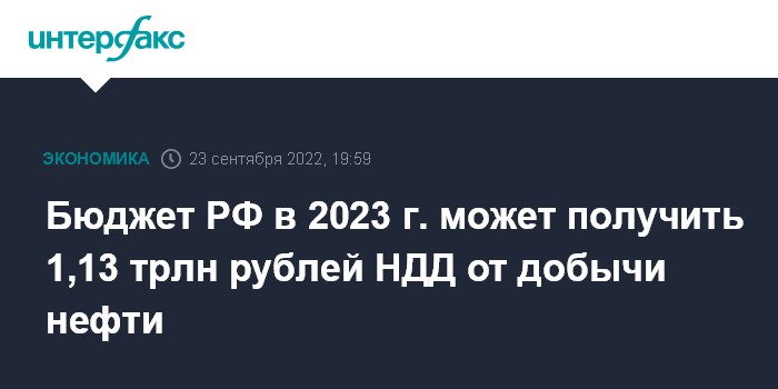 Бюджет РФ в 2023 г. может получить 1,13 трлн рублей НДД от добычи нефти