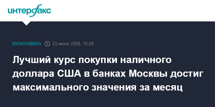 Москва. 23 июня. INTERFAX.RU - По состоянию на 10:00 мск лучший курс покупки наличного доллара США в банках Москвы достиг максимального значения за месяц и составляет 31,30 руб. за доллар.