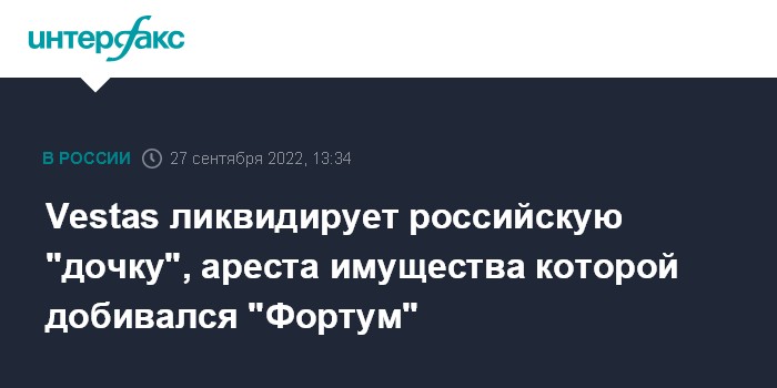 Vestas ликвидирует российскую "дочку", ареста имущества которой добивался "Фортум"