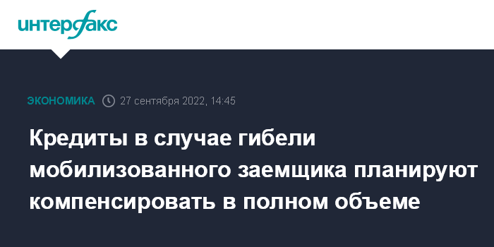 Кредиты в случае гибели мобилизованного заемщика планируют компенсировать в полном объеме