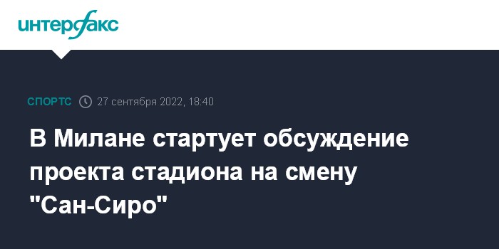 Москва. 27 сентября. INTERFAX.RU - В Милане с 28 сентября начинается общественное обсуждение проекта строительства футбольного стадиона "Собор" (La Cattedrale), который заменит легендарный "Сан-Сиро" (стадион Джузеппе Меацца). Как передает ANSA, график обсуждения был представлен 27 сентября.