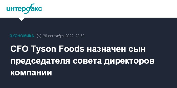 CFO Tyson Foods назначен сын председателя совета директоров компании