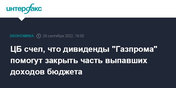 ЦБ счел, что дивиденды "Газпрома" помогут закрыть часть выпавших доходов бюджета
