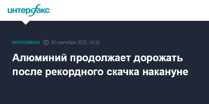 Москва. 30 сентября. INTERFAX.RU - Цены на алюминий продолжают подниматься в пятницу после рекордного взлета накануне на слухах, что Лондонская биржа металлов (LME) рассматривает вариант отказа от торговли российскими металлами.