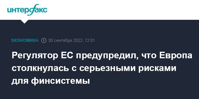 Регулятор ЕС предупредил, что Европа столкнулась с серьезными рисками для финсистемы