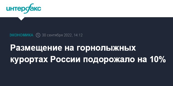 Москва. 30 сентября. INTERFAX.RU - В России на 10% растут цены на горнолыжные курорты в связи с ростом спроса на них, сообщил на пресс-конференции и.о. президента Российского союза туриндустрии Илья Уманский и спрогнозировал дальнейший рост цен.