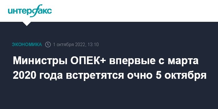 Министры ОПЕК+ впервые с марта 2020 года встретятся очно 5 октября
