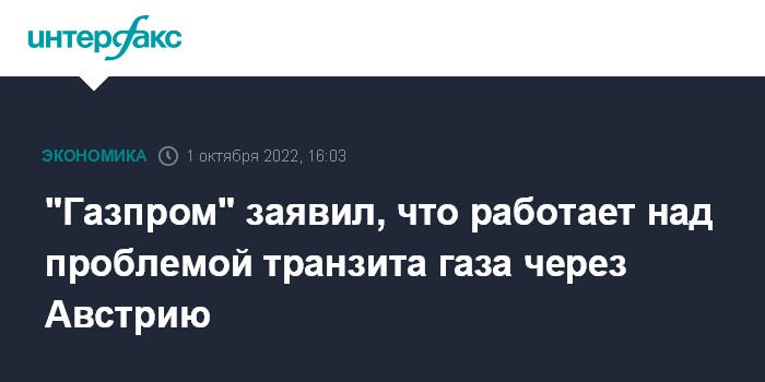 В комментарии "Газпрома" уточняется: "Транспортировка российского газа по контрактам ООО "Газпром экспорт" через территорию Австрии приостановлена в связи с отказом австрийского оператора подтверждать транспортные номинации. Причина связана с регулятивными изменениями, произошедшими в Австрии в конце сентября".