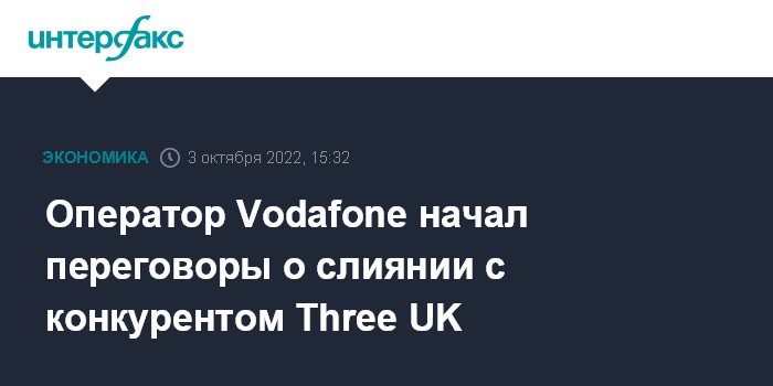 Москва. 3 октября. INTERFAX.RU - Британский оператор сотовой связи Vodafone Group Plc ведет переговоры об объединении с конкурентом Three UK, принадлежащим гонконгскому конгломерату CK Hutchison Holdings. Об этом сообщает Guardian со ссылкой на пресс-релиз Vodafone.